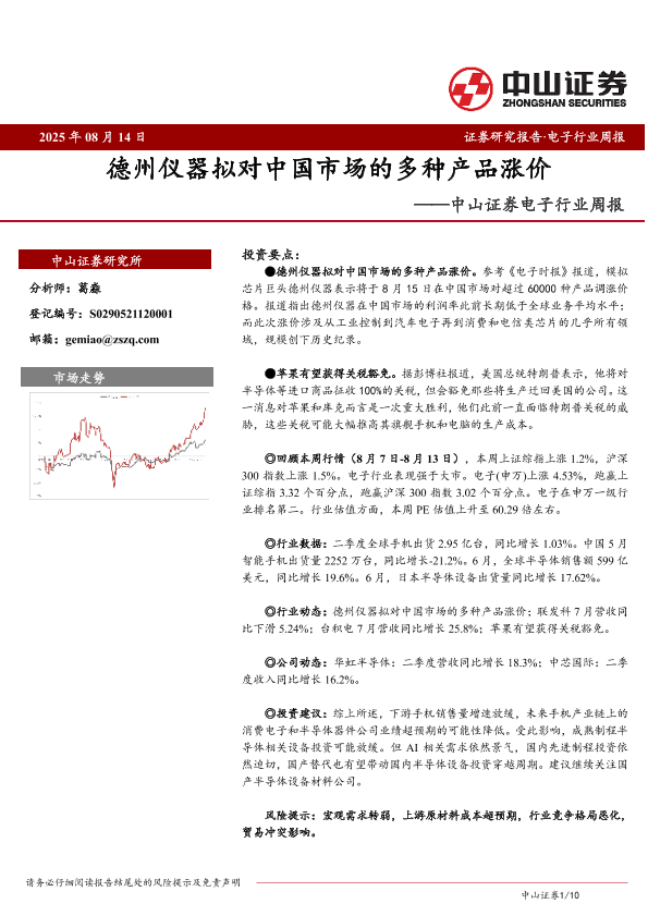 【中山证券】【20250814】德州仪器拟对中国市场的多种产品涨价-10页