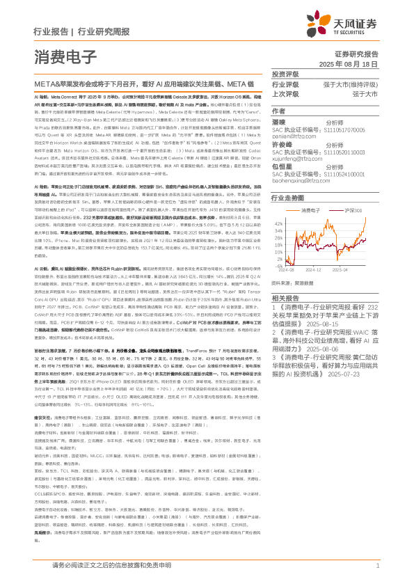 【天风证券】【20250818】苹果-消费电子行业研究周报:META&苹果发布会或将于下月召开,看好AI应用端建议关注果链、META链-17页