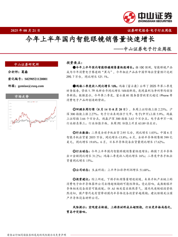 【中山证券】【20250821】今年上半年国内智能眼镜销售量快速增长-10页