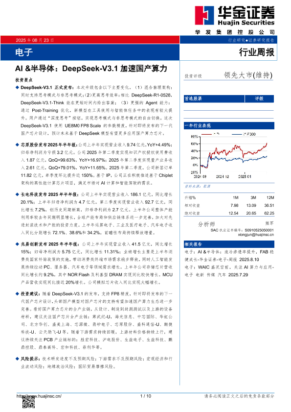 【华金证券】【20250823】AI&半导体:DeepSeek-V3.1加速国产算力-10页