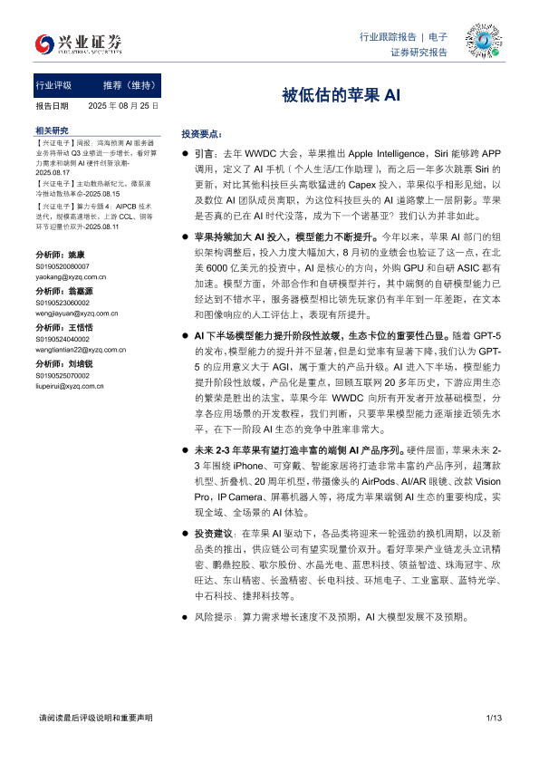 【兴业证券】【20250825】苹果-AI被低估的潜力-13页