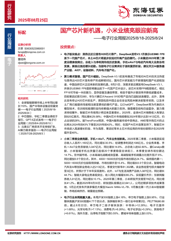 【东海证券】【20250825】小米业绩亮眼迎新高-国产芯片新机遇-15页