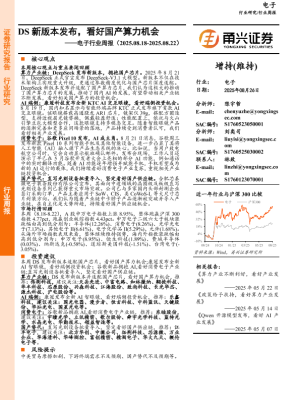 【甬兴证券】【20250826】DS新版本发布,看好国产算力机会-13页