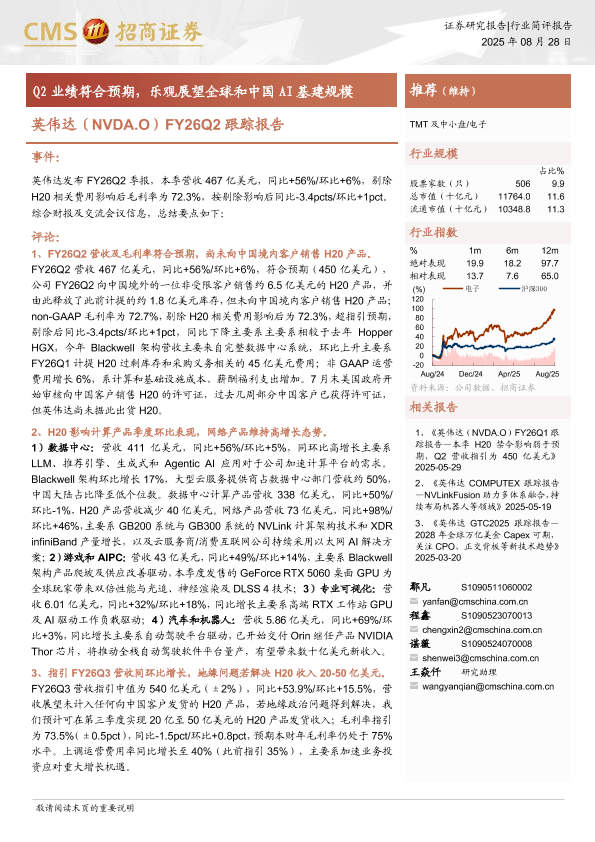 【英伟达】【20250828】英伟达-FY26Q2跟踪报告-Q2业绩符合预期,乐观展望全球和中国AI基建规模-13页