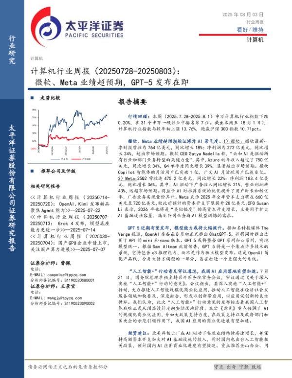 【太平洋证券】【20250803】计算机行业周报:微软、Meta业绩超预期,GPT-5发布在即-10页