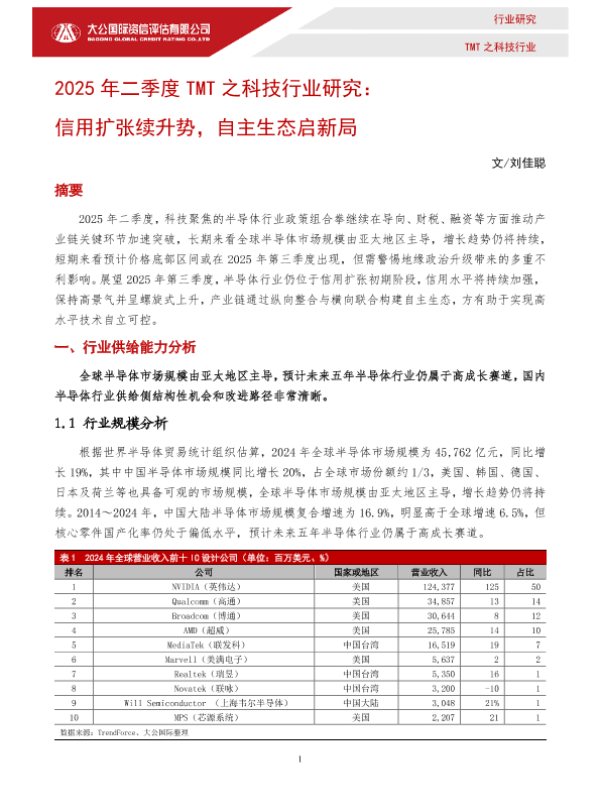 【TMT之科技行业】【20250804】2025年二季度TMT之科技行业研究:信用扩张续升势,自主生态启新局-10页