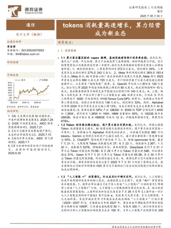【德邦证券】【20250804】tokens消耗量高速增长,算力经营成为新业态-18页