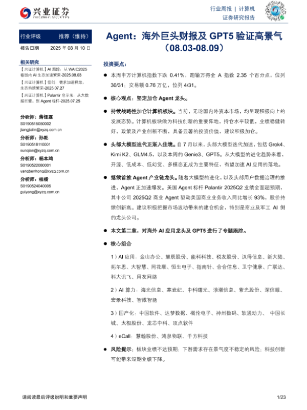 【兴业证券】【20250810】Agent:海外巨头财报及GPT5验证高景气-23页