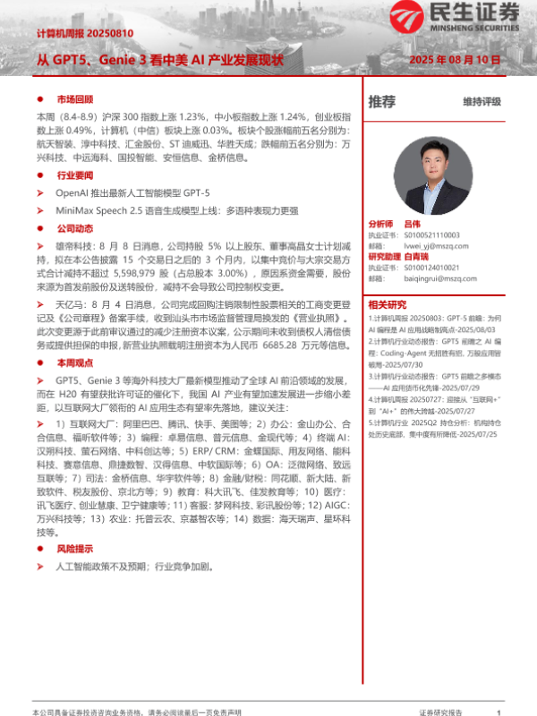 【民生证券】【20250810】从GPT5、Genie 3看中美AI产业发展现状-15页