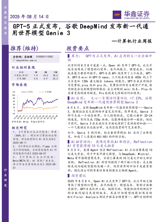 【华鑫证券】【20250814】GPT-5正式发布-谷歌DeepMind发布新一代通用世界模型Genie3-15页