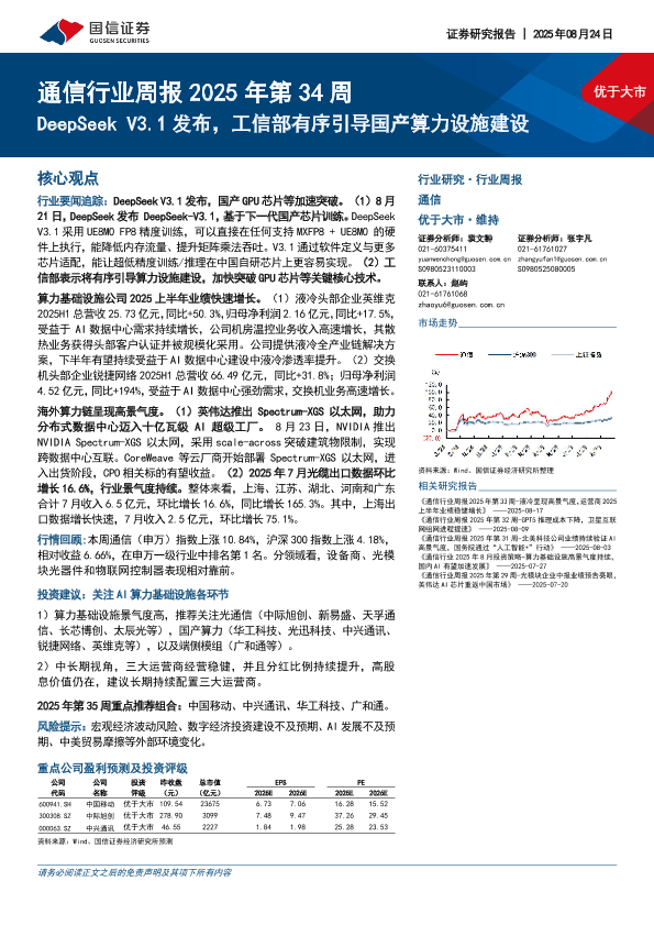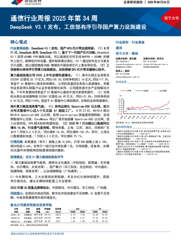 【国信证券】【20250824】DeepSeek V3.1发布,工信部有序引导国产算力设施建设-15页