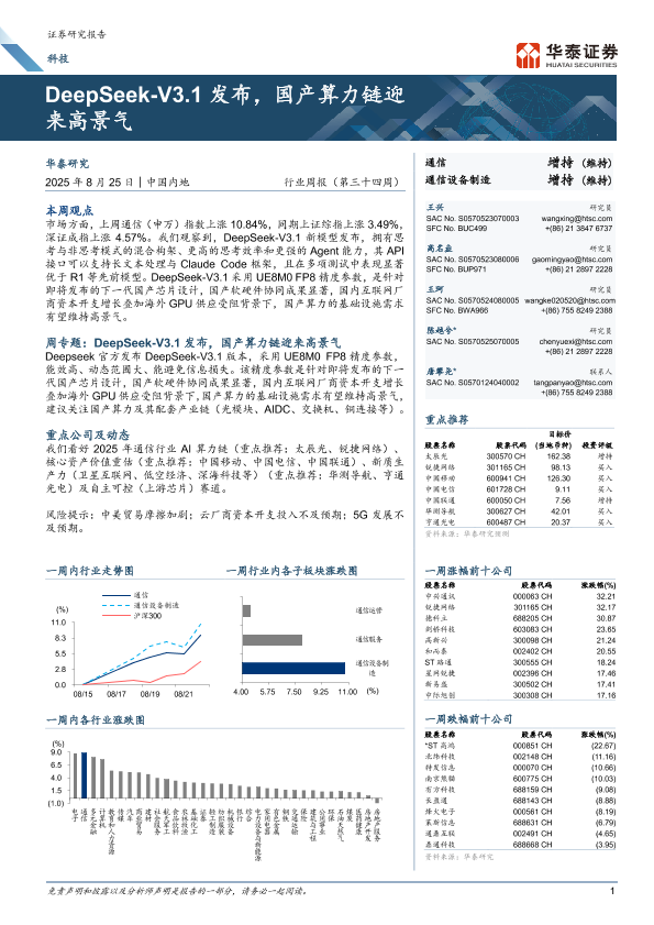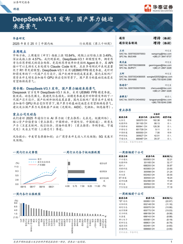 【华泰证券】【20250825】DeepSeek-V3.1发布-国产算力链迎来高景气-18页
