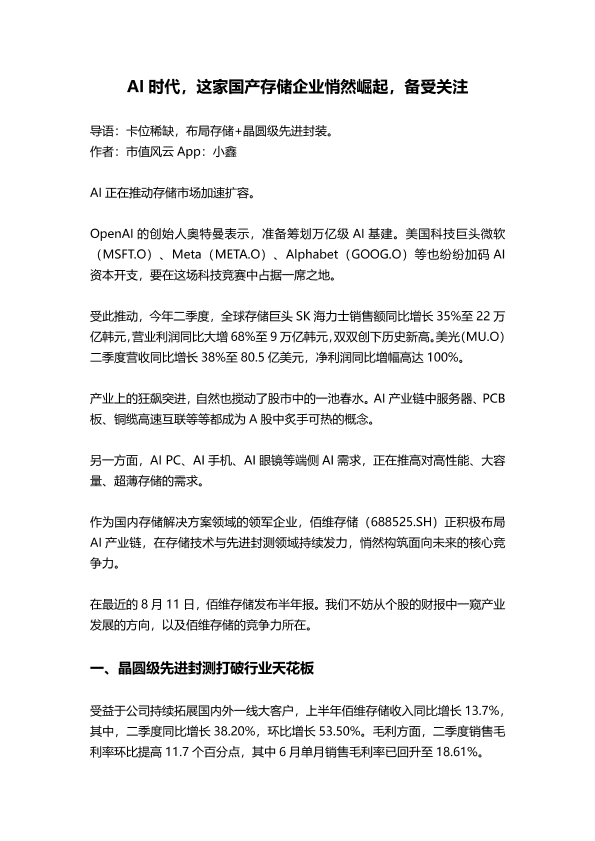 【市值风云 App 小鑫】【202508】佰维存储-AI时代,这家国产存储企业悄然崛起,备受关注-11页