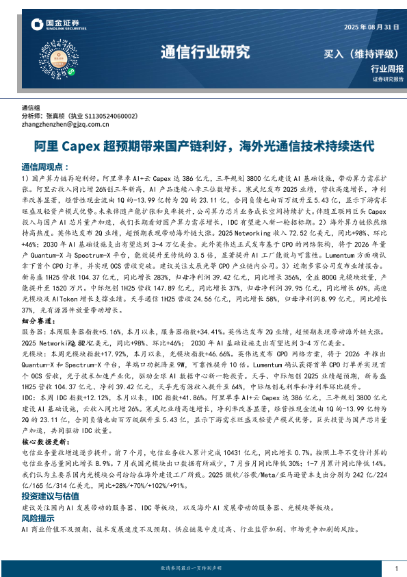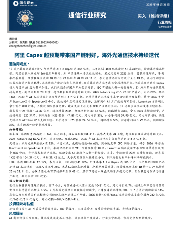 【国金证券】【20250831】阿里Capex超预期带来国产链利好-海外光通信技术持续迭代-10页