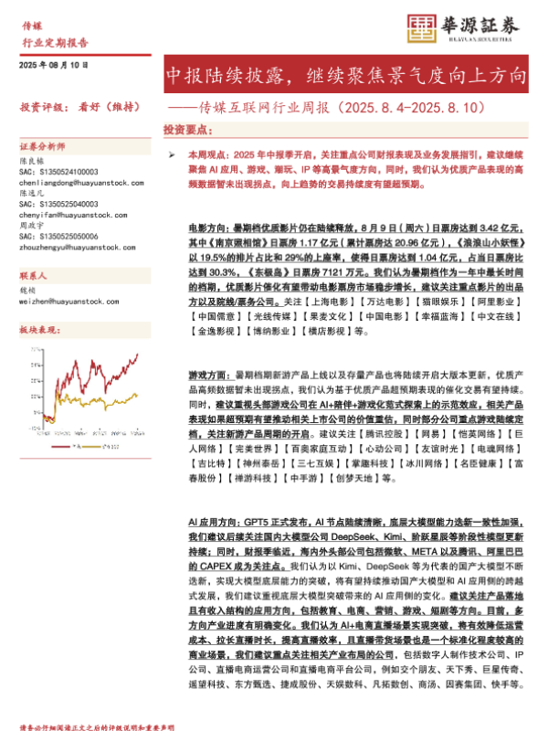 【华源证券】【20250810】传媒互联网行业周报:中报陆续披露,继续聚焦景气度向上方向-17页