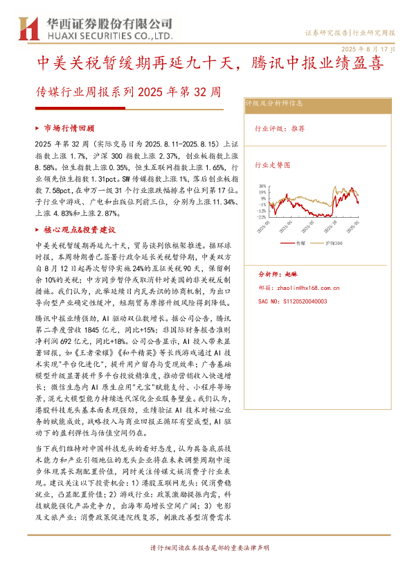 【华西证券】【20250817】腾讯-中美关税暂缓期再延九十天,腾讯中报业绩盈喜-14页