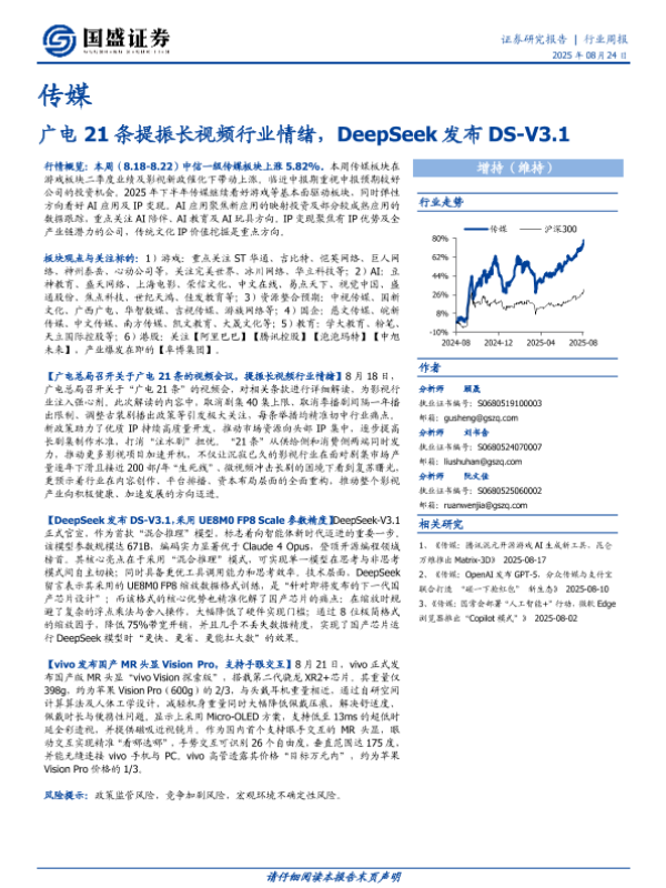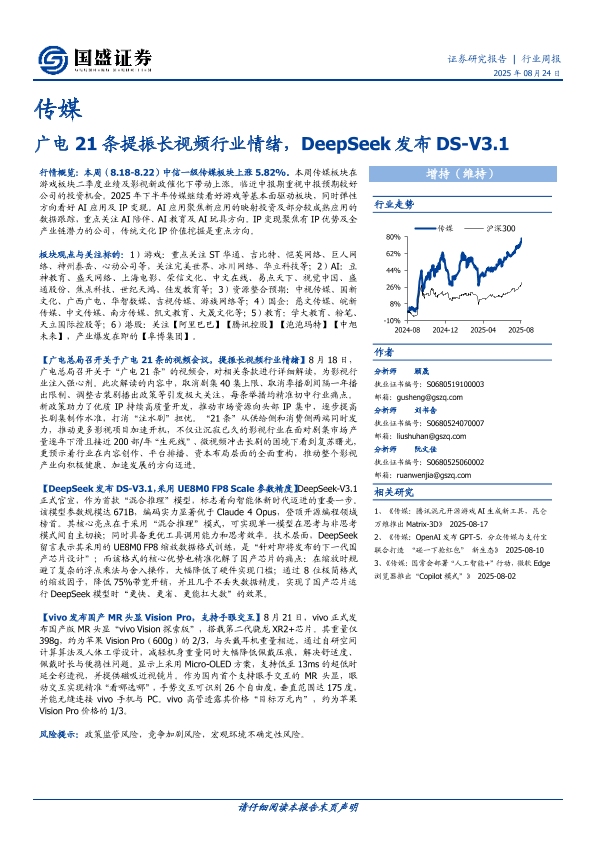 【国盛证券】【20250824】广电21条提振长视频行业情绪-DeepSeek发布DS-V3.1-10页