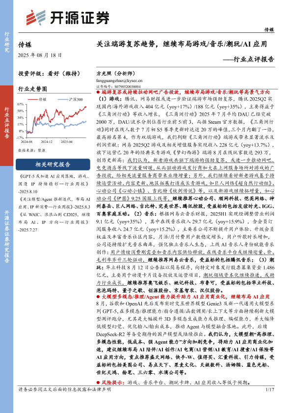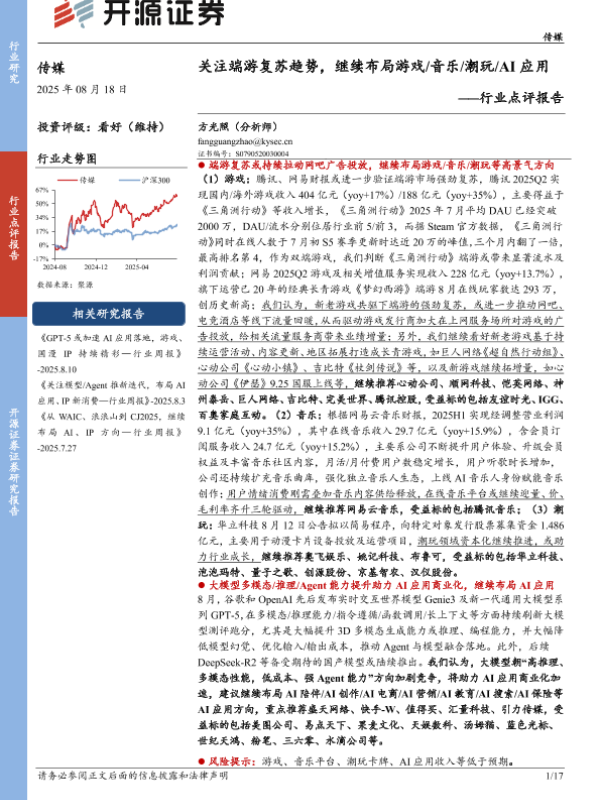 【开源证券】【20250818】关注端游复苏趋势,继续布局游戏/音乐/潮玩/AI应用-行业点评报告-17页