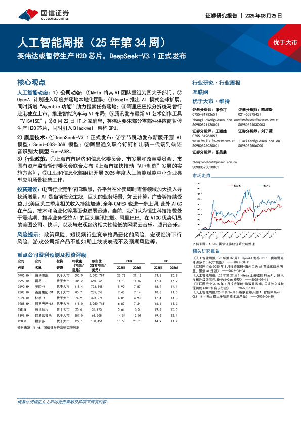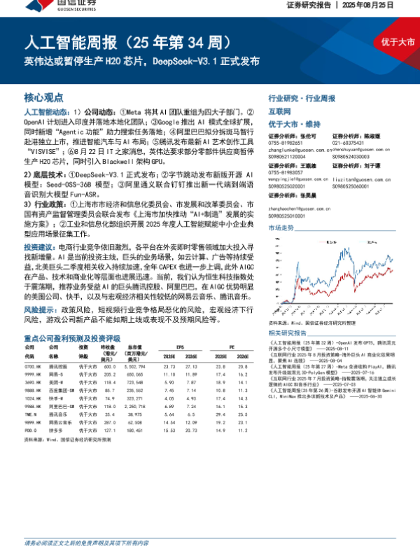 【国信证券】【20250825】英伟达或暂停生产H20芯片,DeepSeek-V3.1正式发布-11页