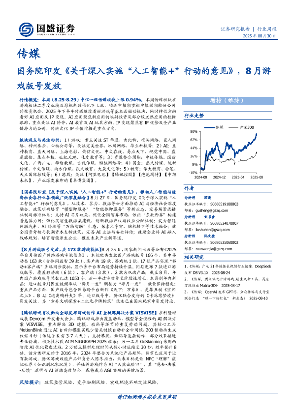 【国盛证券】【20250830】国务院印发《关于深入实施“人工智能+”行动的意见》-8月游戏版号发放-10页