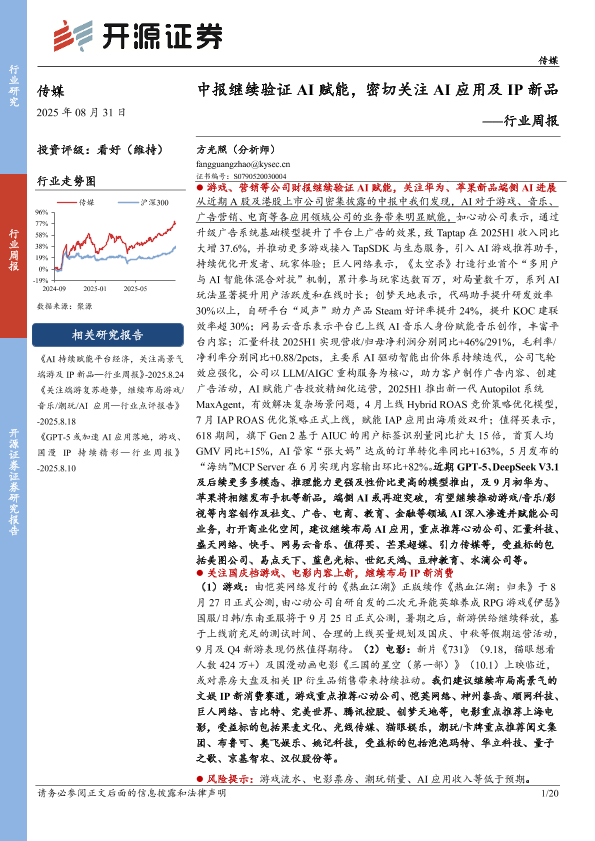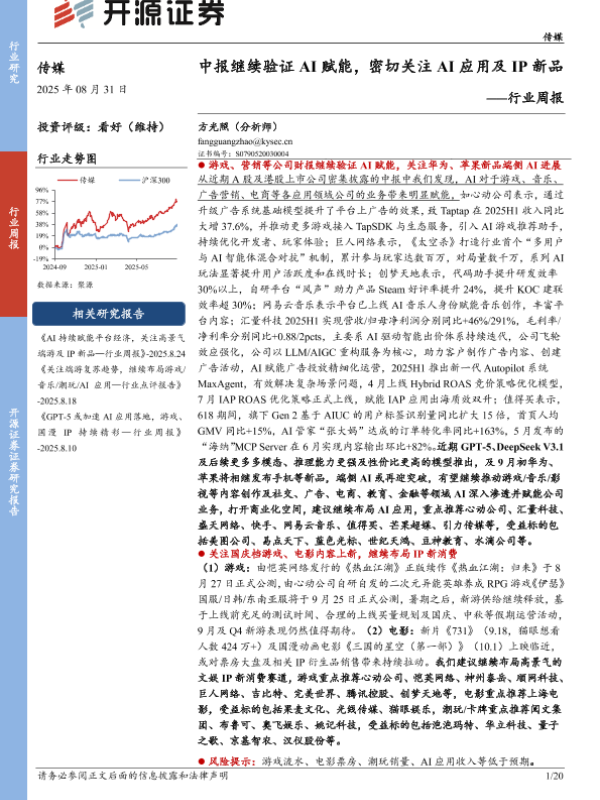 【开源证券】【20250831】中报继续验证 AI赋能,密切关注 AI应用及 IP新品-行业周报-20页