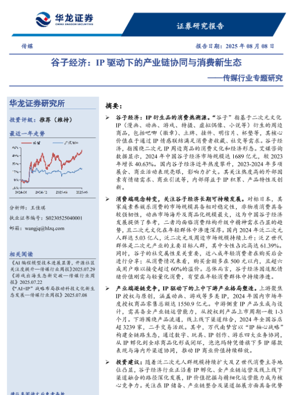 【华龙证券】【20250808】传媒行业专题研究:谷子经济:IP驱动下的产业链协同与消费新生态-23页