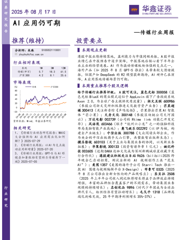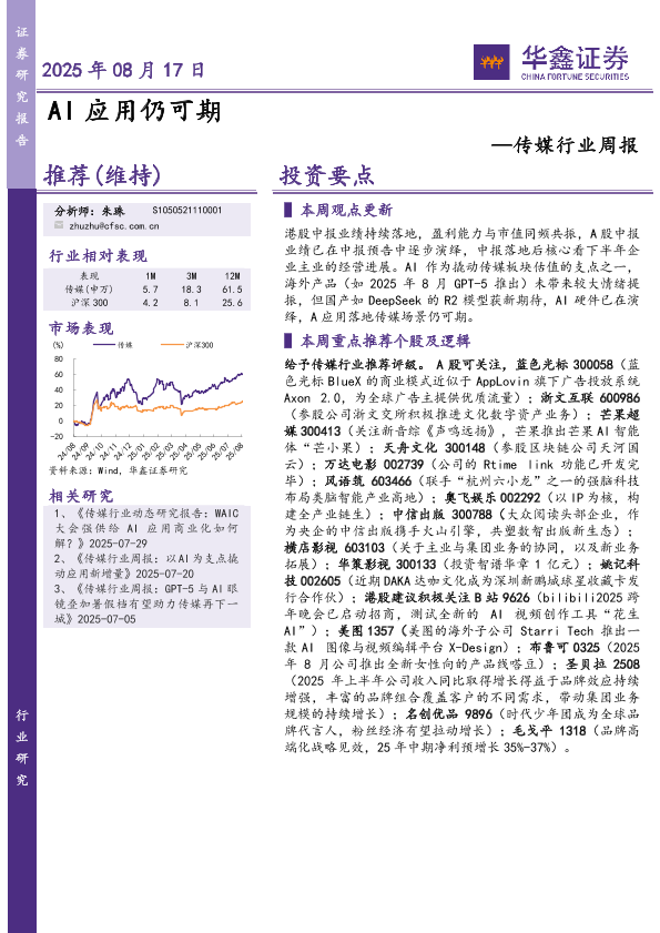 【华鑫证券】【20250817】传媒行业周报:AI应用仍可期-19页