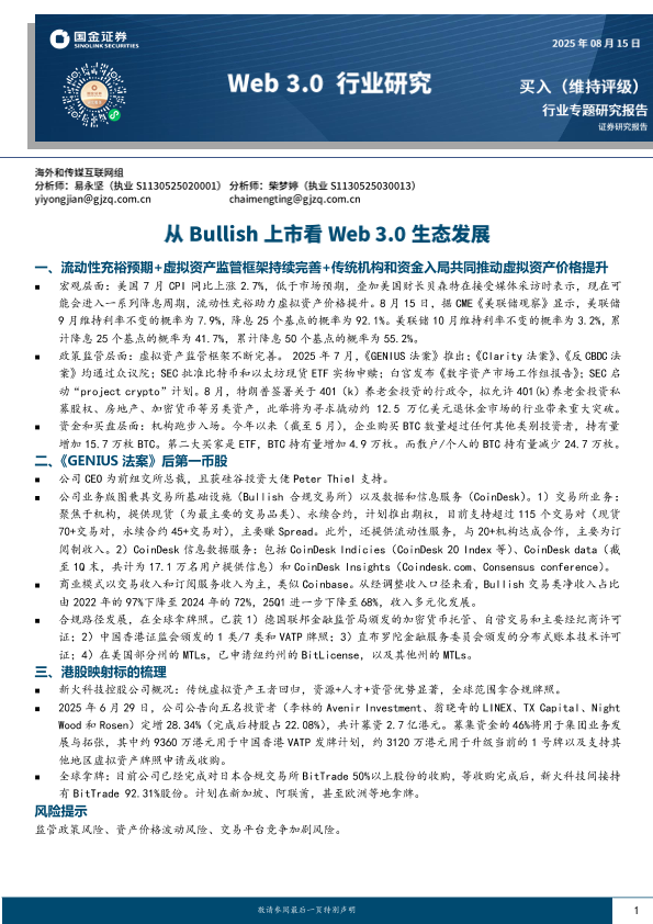 【国金证券】【20250815】Bullish上市看Web 3.0生态发展-19页