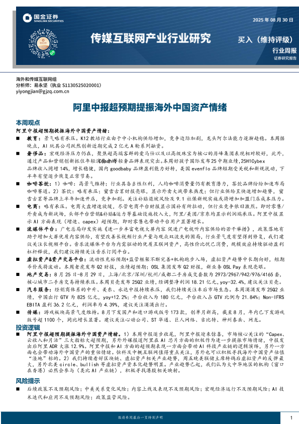 【国金证券】【20250830】阿里-中报超预期提振海外中国资产情绪-16页