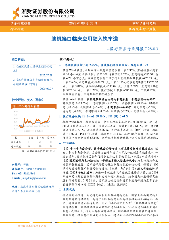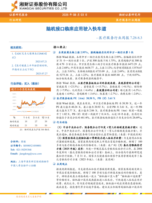 【湘财证券】【20250803】脑机接口临床应用驶入快车道-医疗服务行业周报-12页