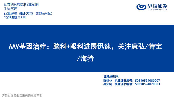 【华福证券】【20250803】康弘药业-特宝生物-海特生物-AAV基因治疗:脑科+眼科进展迅速-32页