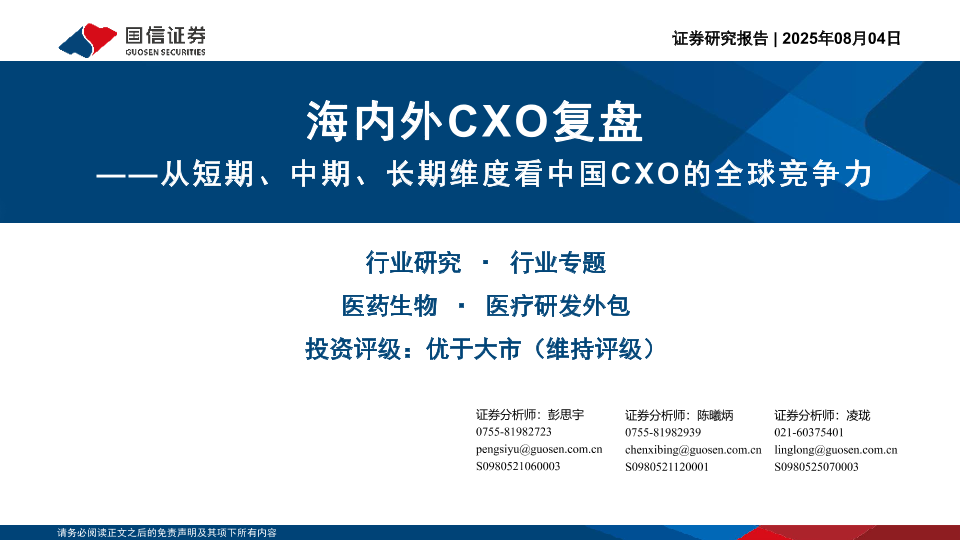 【国信证券GUOSEN SECURITIES】【20250804】海内外CXO复盘:从短期、中期、长期维度看中国CXO的全球竞争力-37页