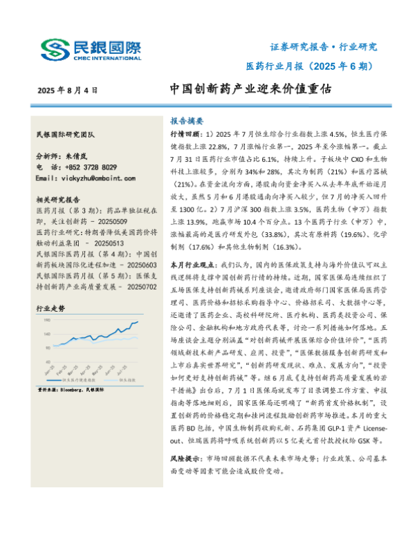 【民銀國際】【20250804】中国创新药产业迎来价值重估-12页
