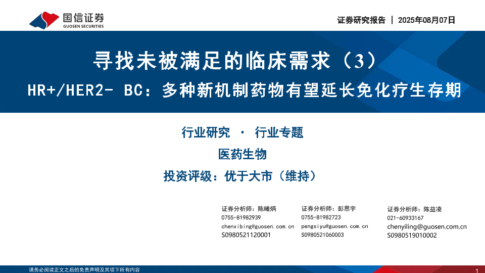 【国信证券GUOSEN SECURITIES】【20250807】HR+ HER2- BC:多种新机制药物有望延长免化疗生存期-63页