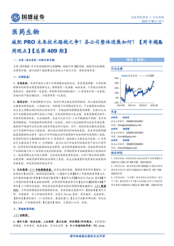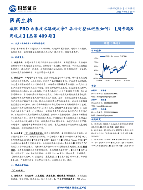 【国盛证券】【20250810】减肥 PRO未来技术路线之争?各公司整体进展如何?-医药生物行业周报-31页