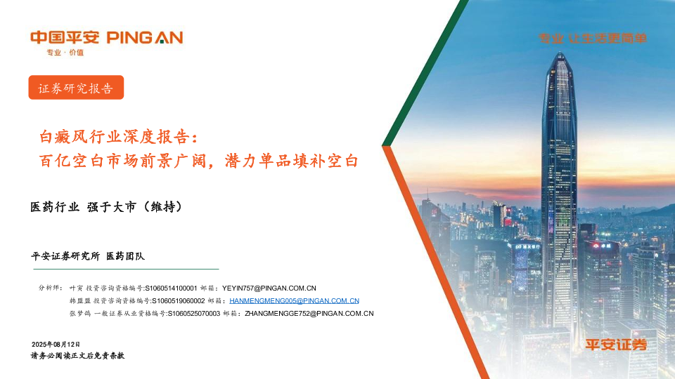 【平安证券】【20250812】白癜风行业深度报告:百亿空白市场前景广阔,潜力单品填补空白-18页