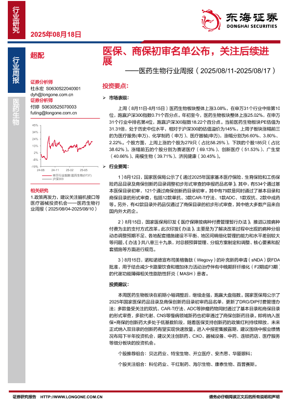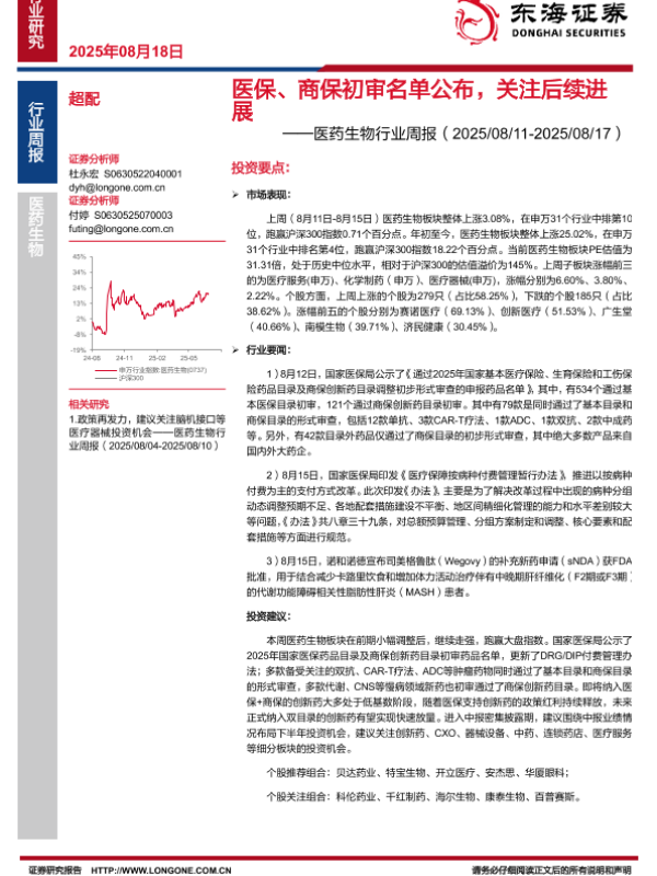 【东海证券】【20250818】医保、商保初审名单公布,关注后续进展-11页