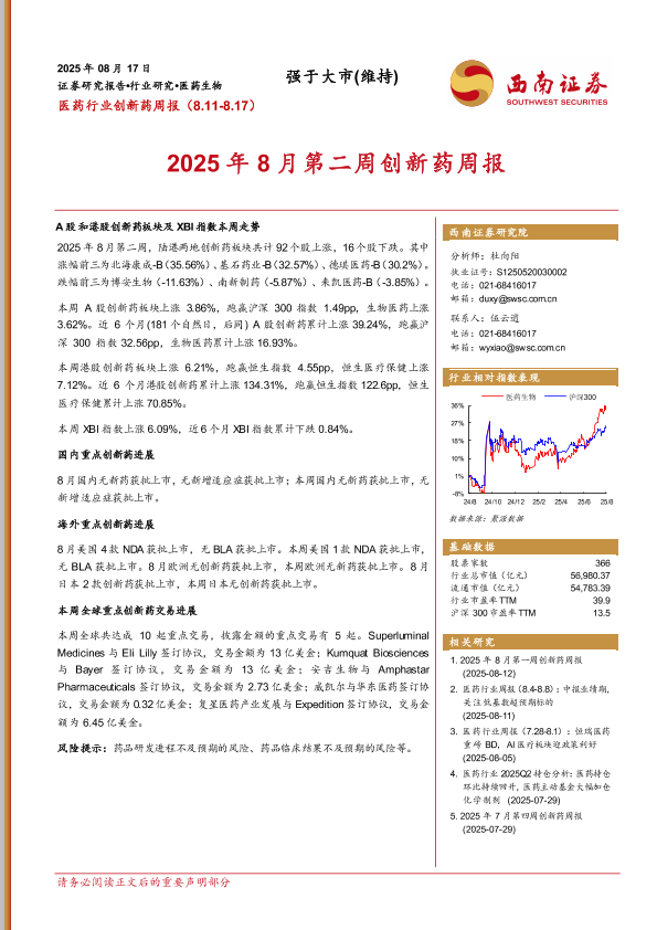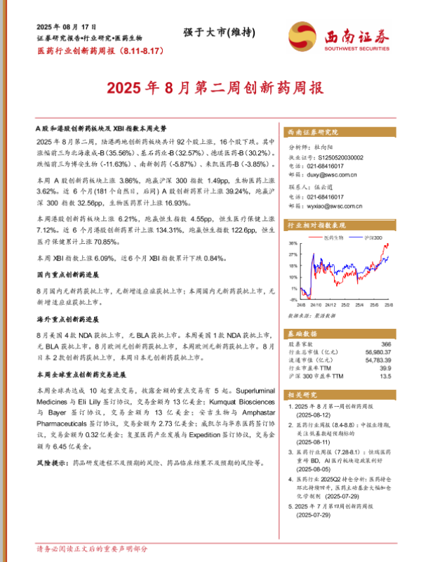 【西南证券】【20250817】医药行业创新药周报(8.11-8.17)-15页