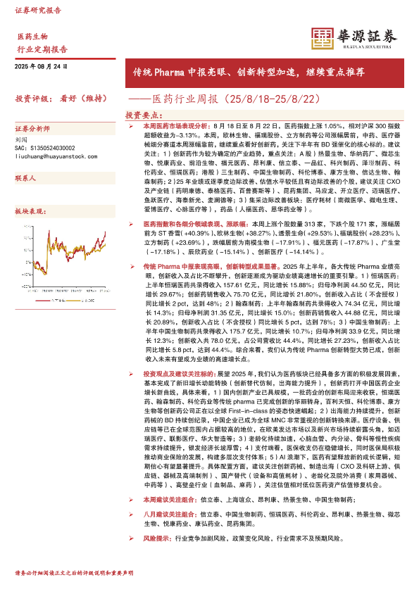 【华源证券】【20250824】传统Pharma中报亮眼、创新转型加速-医药行业周报-17页