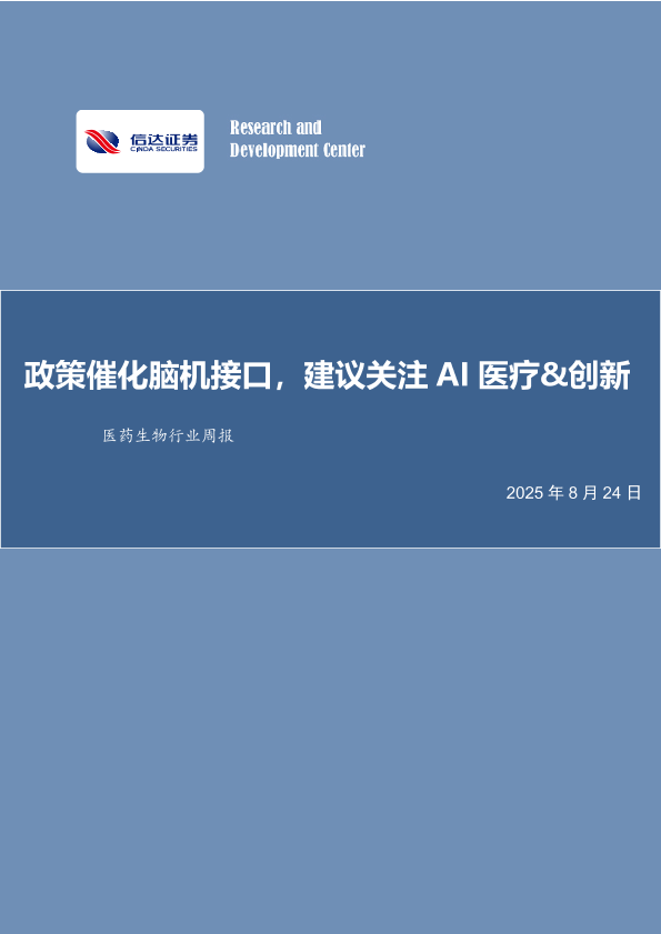 【信达证券 Research and Development Center】【20250824】政策催化脑机接口,建议关注AI医疗&创新-15页