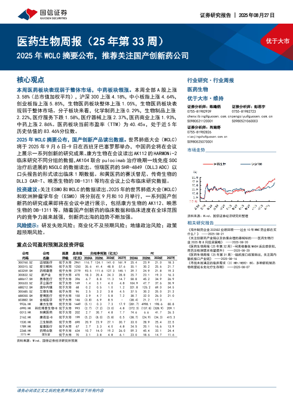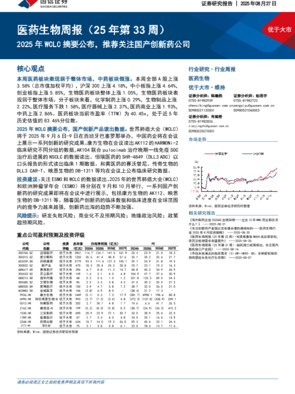【国信证券】【20250827】医药生物行业周报(25年第33周)-2025年WCLC摘要公布,推荐关注国产创新药公司-18页
