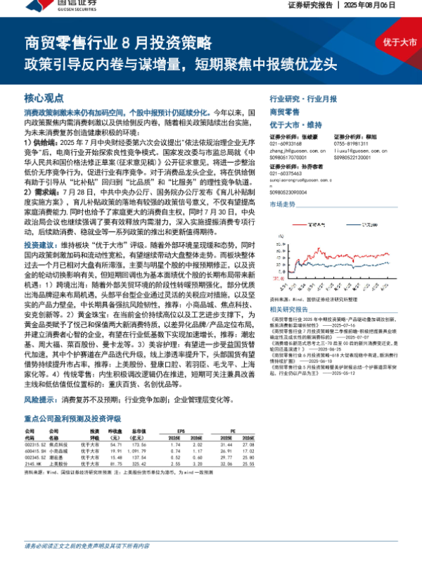 【国信证券】【20250806】商贸零售行业8月投资策略-政策引导反内卷与谋增量,短期聚焦中报绩优龙头-12页