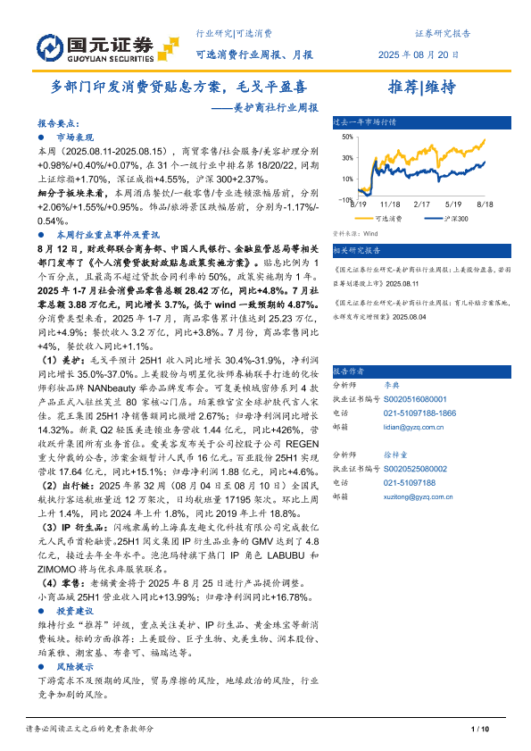 【国元证券】【20250820】毛戈平-多部门印发消费贷贴息方案,毛戈平盈喜-10页
