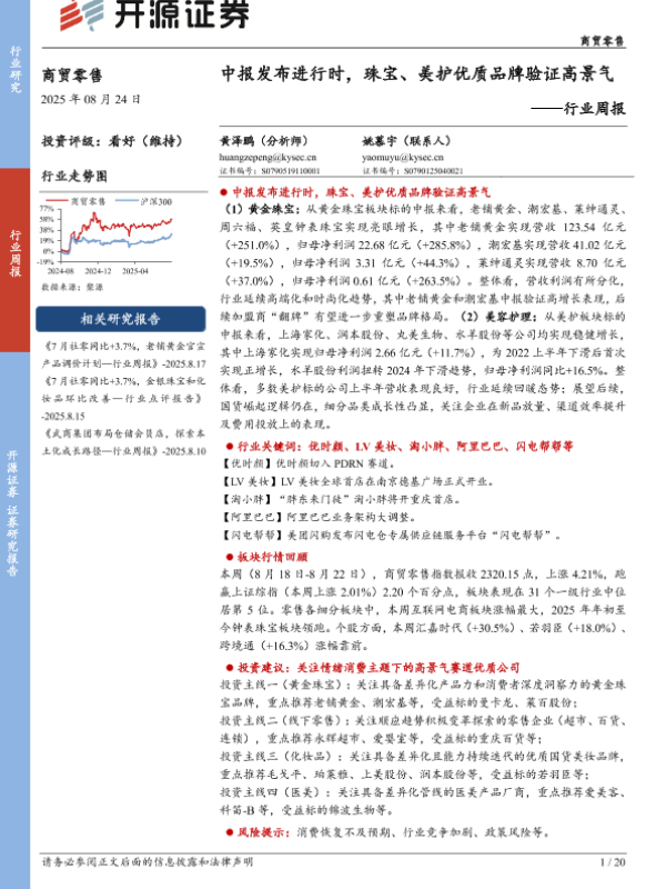 【开源证券】【20250824】老铺黄金-中报发布进行时,珠宝、美护优质品牌验证高景气-20页