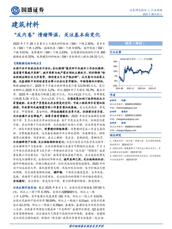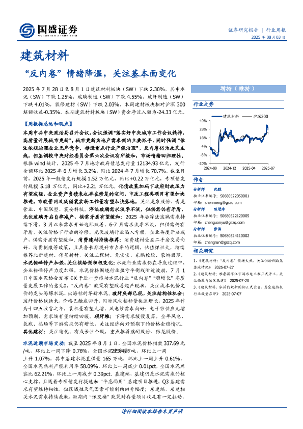 【国盛证券】【20250803】建筑材料行业周报-“反内卷”情绪降温,关注基本面变化-19页