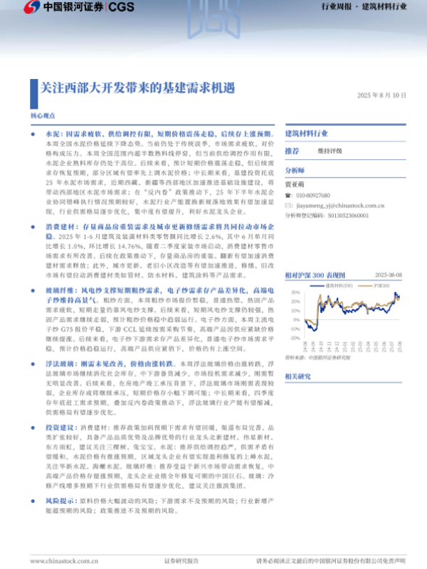 【银河证券】【20250810】建筑材料行业:关注西部大开发带来的基建需求机遇-14页