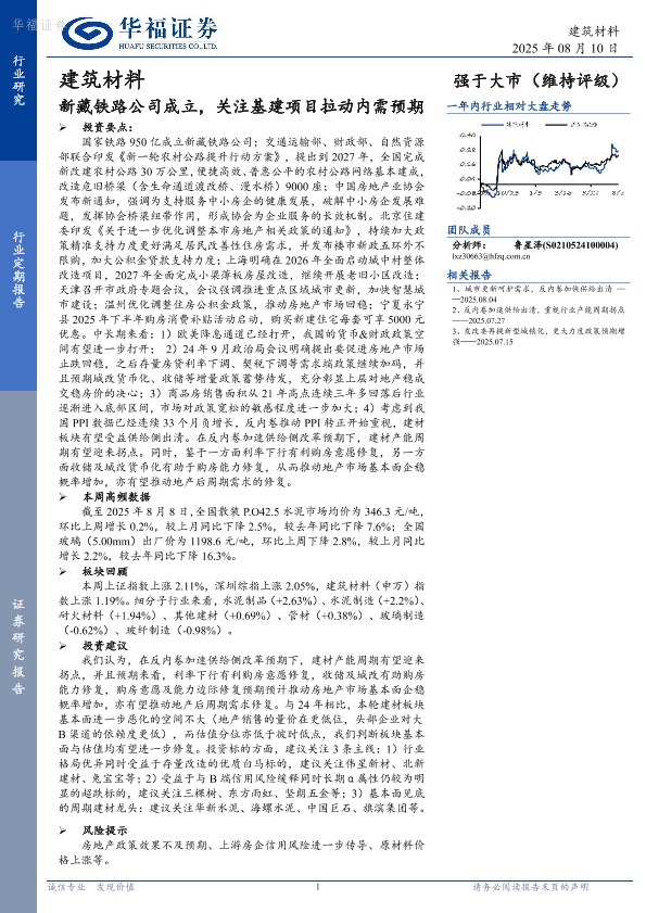 【华福证券】【20250810】建筑材料-新藏铁路公司成立,关注基建项目拉动内需预期-11页