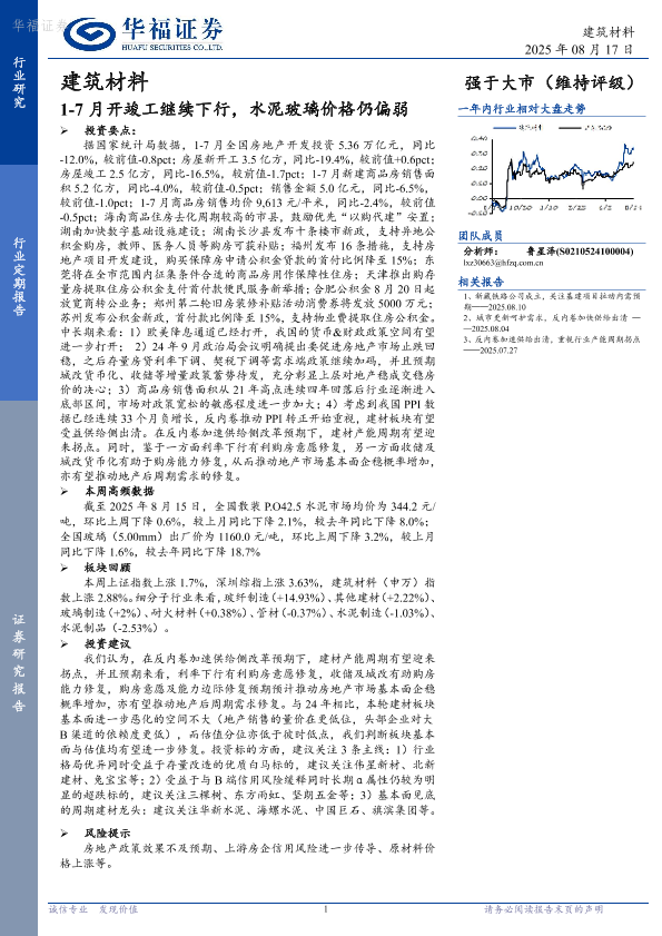 【华福证券】【20250817】建筑材料行业定期报告:1-7月开竣工继续下行,水泥玻璃价格仍偏弱-11页