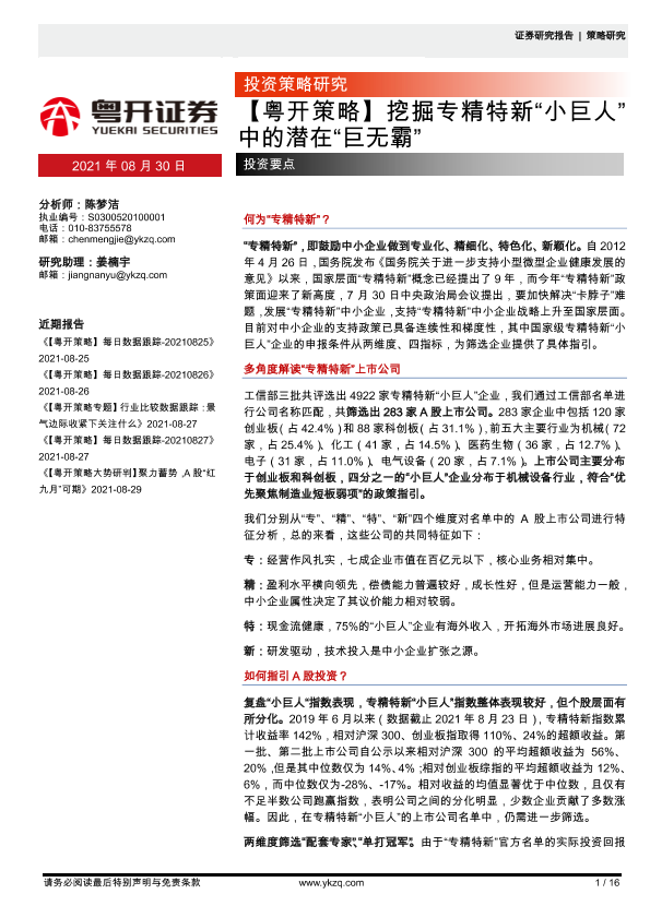 【粤开证券】【20210830】挖掘专精特新“小巨人”中的潜在“巨无霸”-16页