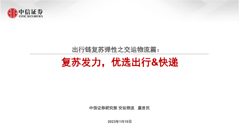 【中信证券】【20230110】交运物流行业出行链复苏弹性之交运物流篇:复苏发力,优选出行&快递-31页